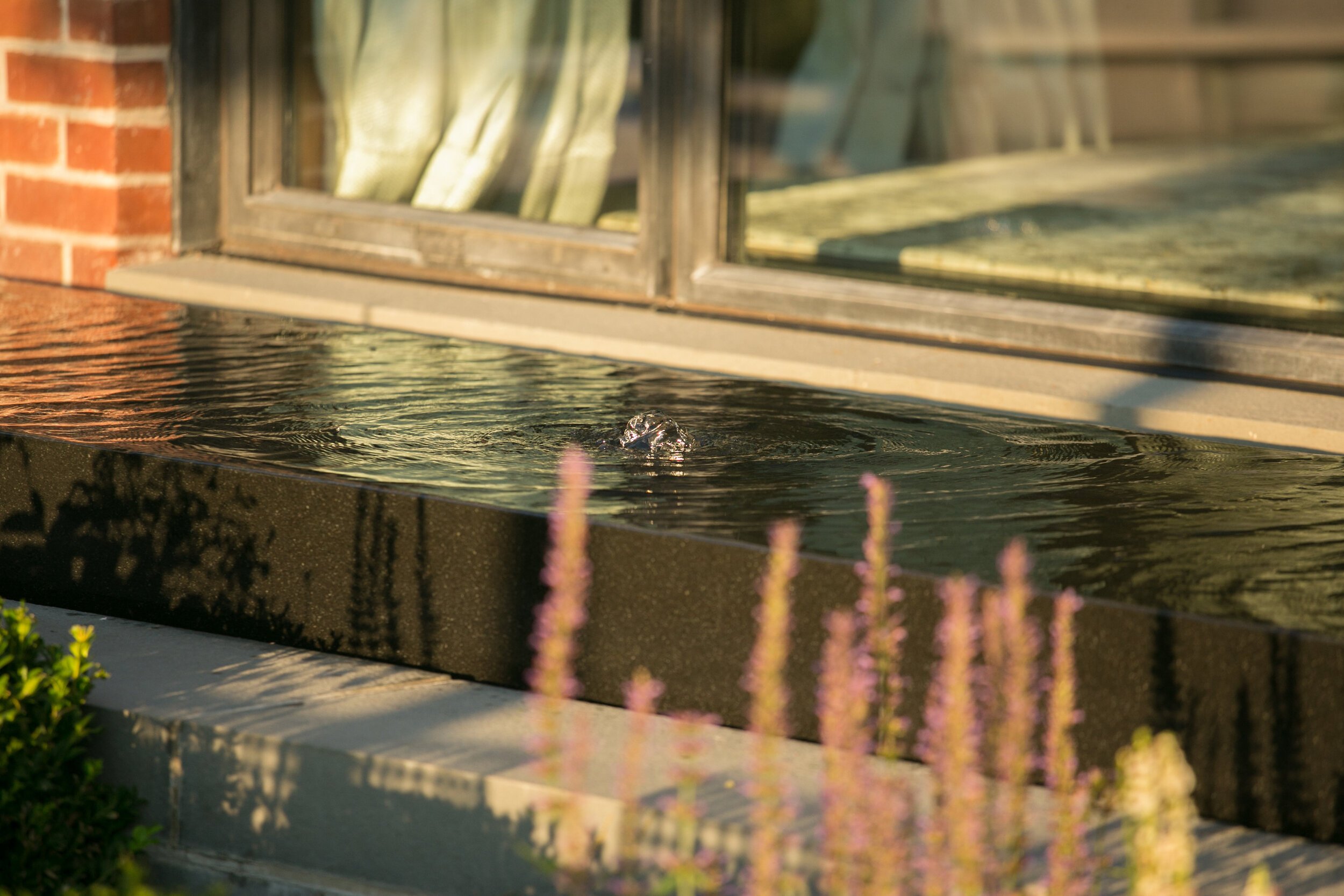 After working with our clients for almost two decades, an addition/alteration to the house dictated a new landscape. The main formal structure was infused with new and updated architectural elements and the landscape design followed suit. Heavily influenced by northern European landscapes, several intimate outdoor spaces were created for entertaining. Unique water features were designed along with structured plantings of clipped hedges and trees and intermixed with seasonal color. This design was about sophisticated restraint while paying close attention to creative detailing. A high quality of materials and outdoor lighting helped further elevate the landscape.